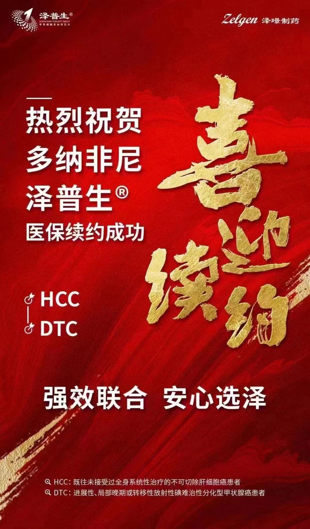2023年12月13日,根据国家医疗保障局、人力资源和社会保障部发布的《关于印发<国家基本医疗保险、工伤保险和生育保险药品目录(2023年)>的通知》(医保发〔2023〕30号),泽璟制药自主研发的1类新药甲苯磺酸多纳非尼片(以下简称“多纳非尼”,商品名:泽普生®)用于既往未接受过全身系统性治疗的不可切除肝细胞癌患者的适应症通过国家医保谈判,继续纳入《国家基本医疗保险、工伤保险和生育保险药品目录(2023年)》,并新增用于进展性、局部晚期或转移性放射性碘难治性分化型甲状腺癌患者的适应症范围。