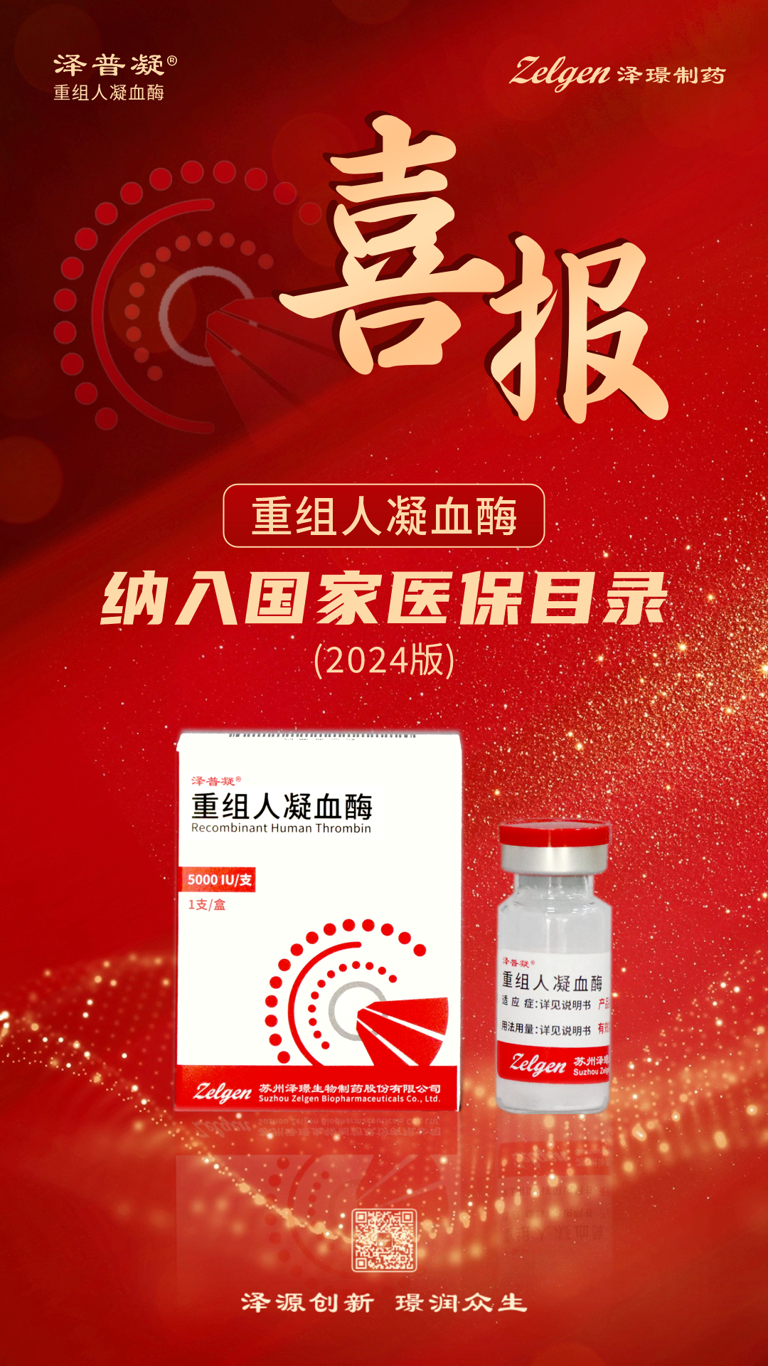 2024年11月28日,国家医疗保障局、人力资源和社会保障部公布了《国家基本医疗保险、工伤保险和生育保险药品目录(2024年)》(“国家医保药品目录”),泽璟制药自主研发的重组人凝血酶通过国家医保谈判,被纳入国家医保药品目录。2024年国家医保药品目录将于2025年1月1日起执行。
