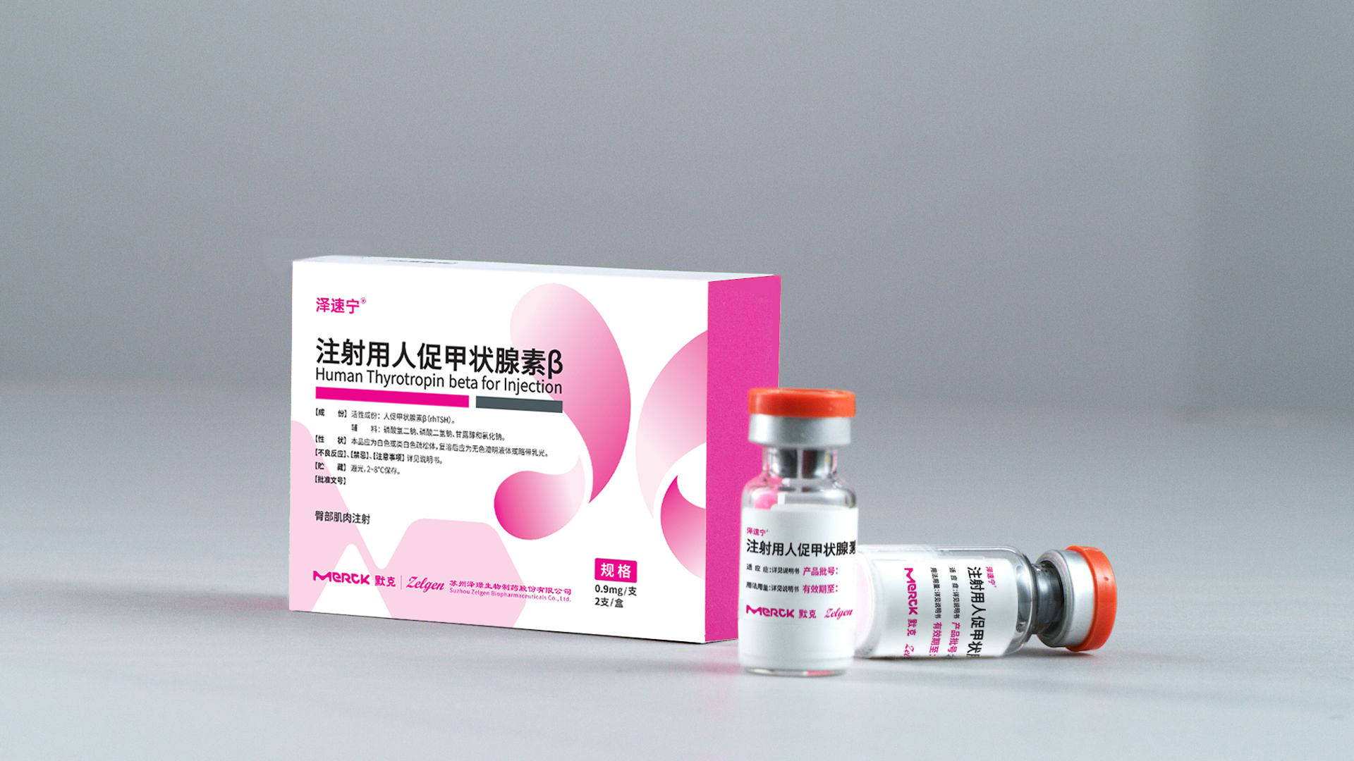 2025年6月,默克与泽璟制药达成合作协议,获得其自主研发的注射用重组人促甲状腺激素产品——泽速宁®在中国大陆地区的独家商业化权益。泽速宁®在中国的获批适应症为,用于分化型甲状腺癌(DTC)患者在甲状腺全切或近全切除术后随访中的协同诊断,以进行血清甲状腺球蛋白(Tg)检测,伴或不伴放射性碘(¹³¹I)全身显像(WBS)检查。可在不停用甲状腺激素的情况下快速提升体内TSH水平,刺激残余甲状腺组织或病灶增加摄碘和分泌甲状腺球蛋白,从而实现术后疾病状态的精准评估。
